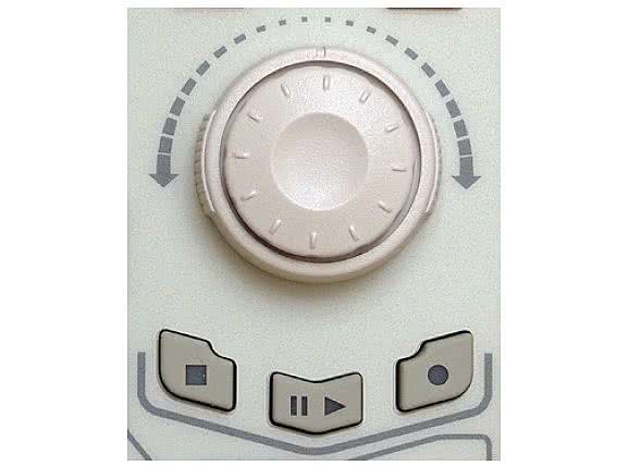 Fotografia 4. Elementy sterujące płyty czołowej oscyloskopu wykorzystywane do rejestracji i odtwarzania przebiegów
