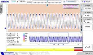 Dzięki zastosowaniu technologii Ultra Vision możliwe stało się uzyskanie dużych szybkości przechwytywania przebiegów dochodzące do 50000 wfms/s. Na oscylogramie przedstawionym na rysunku 2 można zaobserwować wyraźne anomalie przebiegu ujawnione dzięki dużej szybkości przechwytywania. Co więcej, przebiegi te mogą być rejestrowane w specjalnej pamięci w celu poddawania ich dalszej analizie.