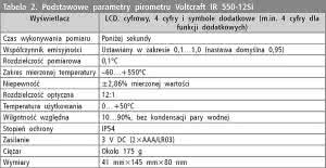 Temperatura jest mierzona w zakresie od -60 do +550°C. "Wychwytywane" są fale wchodzące o długości od 8 do 14 mikrometrów. Podstawowe parametry przyrządu podano w tabeli 2.