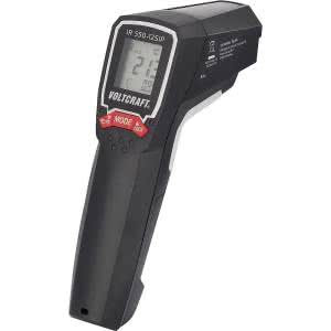 Pirometr Voltcraft IR 550-12SIP umieszczono w solidnej obudowie z tworzywa sztucznego. Funkcjonalny, czytelny wyświetlacz podający wynik pomiaru, czujnik podczerwieni oraz celownik laserowy umieszczono na rękojeści zawierającej baterie zasilające. Rękojeść dobrze "leży" w dłoni, co sprawia, że przyrząd jest wygodny w użyciu.