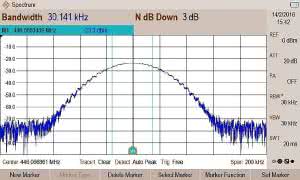 Markery są wykorzystywane także do często wykonywanych pomiarów szerokości pasma - opcja "N dB Down". Po jej włączeniu na ekranie oprócz markera referencyjnego M1 zostają wyświetlone wokół niego dwa dodatkowe markery tymczasowe.