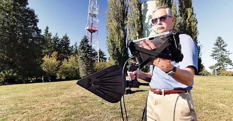 Fotografia 1. Przykładowe zastosowanie RSA500 przy poszukiwaniu interferencji. Na zdjęciu z opisywanym tabletem i anteną kierunkową