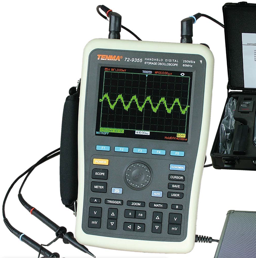 Oscyloskop inżyniera produkcji (procesu) lub serwisanta na ogół nie musi charakteryzować się wygórowanymi parametrami. Dużo ważniejsza jest prostota obsługi, mobilność, a więc mała masa i wymiary, zasilanie akumulatorowe oraz... dobra torba. Przyrząd taki ma być pomocny przede wszystkim w lokalizowaniu i diagnozowaniu usterek oraz wykonywaniu podstawowych pomiarów. Najlepiej, gdy będzie łączył kilka funkcji, np. miernika uniwersalnego (pomiar napięć, prądów, rezystancji, pojemności, test połączeń, test diody) i oscyloskopu. Przyrządy takie są produkowane. W ofertach można znaleźć wyroby światowych liderów tej branży oraz firm mniej znanych. Nawiasem mówiąc, z informacji zamieszczanych na stronach internetowych producentów dowiadujemy się, że każdy z nich odgrywa wiodącą rolę na świecie. Nie będziemy jednak wchodzić w szczegóły, przejdziemy do opisu oscyloskopu ręcznego Tenma 72-9355, który otrzymaliśmy do redakcyjnego testu.