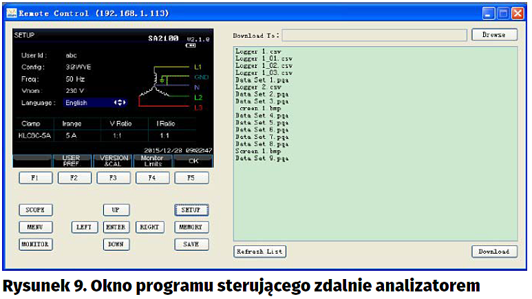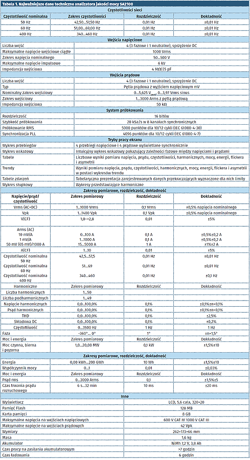 Najważniejsze parametry techniczne analizatora jakości mocy SA2100 przedstawiono w tabeli 1. Do przyrządu jest dodawana płytka z instrukcją obsługi oraz programem, który może być wykorzystywany jako zdalny pulpit miernika (rysunek 9).