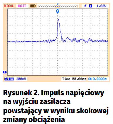 Typowe zmiany napięcia/prądu przy zmianie obciążenia o 100% |