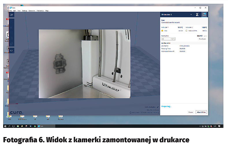 Możliwość wydruku za pomocą dwóch ekstruderów jest po prostu bezcenna. Gdy nie miałem materiału PVA, to do drukowania podpór używałem innego PLA, a parametry wydruku w trybie „Custom” ustawiałem w taki sposób, aby podpora była cienka, rzadko drukowana – w efekcie można ją było bardzo łatwo oddzielić np. nożykiem do tapet, a w większości wypadków po prostu odłamać. Ponadto, drukarka jest w miarę cicha, tworzony obiekt można kontrolować zdalnie (również za pomocą aplikacji dla smartfona), poza opisanymi wyżej problemami z materiałem, wynikającymi trochę z przypadku, a trochę z mojego zaniedbania, nie sprawia żadnych problemów eksploatacyjnych. I co ważne – firma Ultimaker bardzo chętnie słucha uwag użytkowników i zapewne lada moment mankamenty opisywane w artykule zostaną usunięte.
