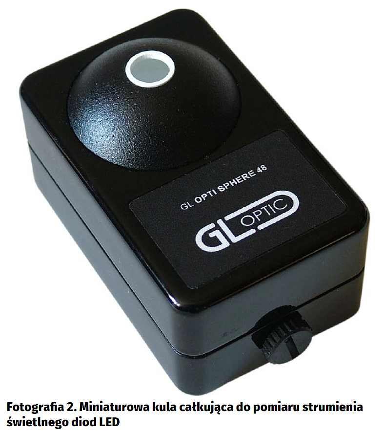 - Kula całkująca GL OPTI SPHERE 48 wykorzystywana do pomiarów strumienia świetlnego pojedynczych diod LED (fotografia 2).