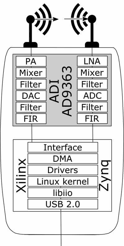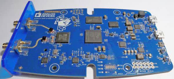Sercem ADALM-PLUTO jest scalony transceiver AD9363. W zestawie umożliwia on realizację transmisji full-duplex (TX+RX), pracując w zakresie 325…3,8 GHz przy szerokości pasma do 20 MHz i z częstotliwością próbkowania do 61,44 MSa/s. Zastosowane anteny JCG401 optymalizowane są do pracy w paśmie 824…894 MHz i 1710…2170 MHz, ale radzą sobie w znacznie szerszym zakresie. Za konfigurację AD9363 i komunikację z użytkownikiem odpowiada układ SoC Xilinx XC7Z010 zawierający układ FPGA oraz rdzeń ARM pracujący pod kontrolą systemu Linux. Katalogowo zestaw kosztuje 149 USD, co jest ceną bardzo przystępną, o czym świadczy bardzo szybka wyprzedaż pierwszej partii Pluto.