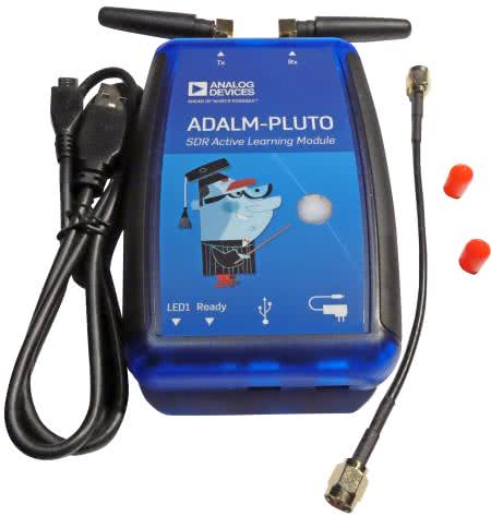 Dla zapoznania się z technologią SDR firma Analog Devices przygotowała zestaw uruchomieniowy ADALM-PLUTO. W skład zestawu wchodzi odbiornik-nadajnik SDR, anteny, kabel USB oraz mostek SMA, czyli wszystko, co konieczne od strony sprzętowej, aby rozpocząć praktyczną przygodę z SDR. Wygląd zestawu pokazano na rysunku 1, a jego schemat blokowy na rysunku 2.