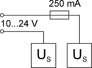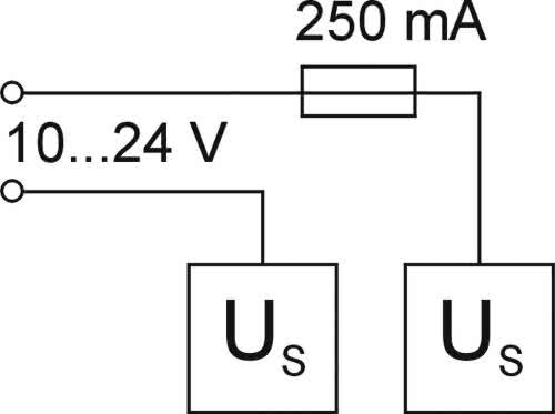 Typowy, wskazówkowy miernik analogowy był wyposażony jedynie w zaciski napięcia mierzonego (lub prądu). Miernik DPM72-MPN ma jednak wbudowany układ elektroniczny oraz wyświetlacz graficzny, które wymagają zasilania. Przyrząd jest zasilany napięciem stałym 10...24 V. Powinno być ono doprowadzone do gniazda zasilającego przez bezpiecznik 250 mA (rysunek 5).