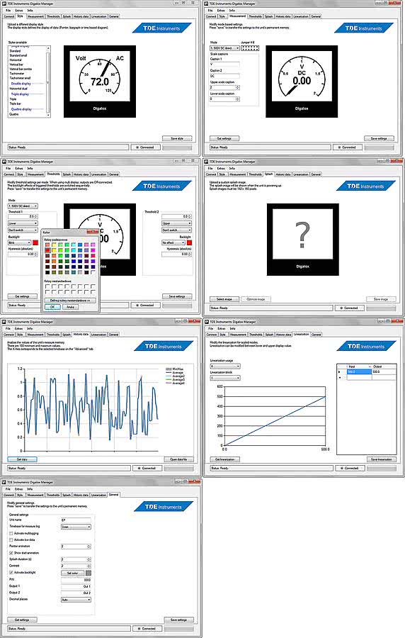 Poszczególne operacje konfiguracyjne rozdzielono na zakładki (rysunek 8). W jednej z nich - „Style” wybierany jest wygląd wskaźnika. Miernik jest konfigurowany dla jednego, dwóch, trzech lub czterech wskaźników. Ich wygląd jest również zmieniany. Do wyboru są typowe wskaźniki wskazówkowe, ich wersje poziome, pionowe wskaźniki paskowe, wskaźniki paskowe łączone z zapisem rejestratora, skala typu tachometr itp.
