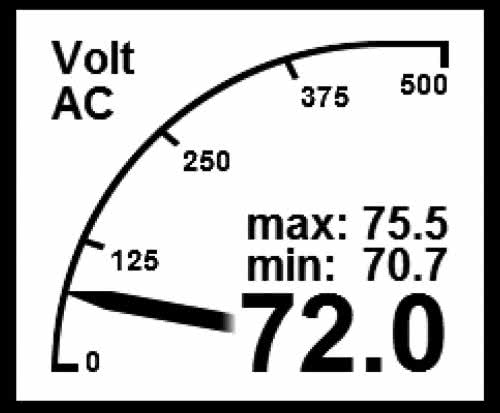 Cyfrowa technika pomiaru umożliwia implementację dodatkowych funkcji miernika. Jedną z nich jest wyznaczanie wartości minimalnych i maksymalnych. Po wybraniu odpowiedniej opcji są one wyświetlane na bieżąco obok głównego pola odczytowego (rysunek 3).