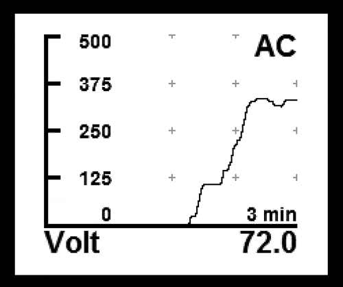 Dysponowanie cyfrową postacią wyniku umożliwiło ponadto realizację funkcji rejestratora. I w tym wypadku należy wybrać odpowiednią opcję wyświetlania. Zapis rejestratora jest wyświetlany w postaci wykresu (rysunek 4). Bufor pamięci pozwala na rejestrację w czasie od 3 minut do 14 dni. Jest to bufor cykliczny, więc po jego zapełnieniu dane zapętlają się. Niestety, nie ma możliwości zatrzymania rejestracji.
