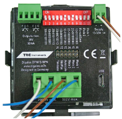 Atrakcyjną z użytkowego punktu widzenia cechą miernika panelowego DPM72-MPN jest możliwość jego zdalnego konfigurowania. Do tego celu jest wykorzystywane gniazdo USB, przez które jest on podłączany do komputera. Producent udostępnia oprogramowanie „Digalox-Manager” pozwalające na wygodne ustawianie parametrów przyrządu. Komunikacja odbywa się przez emulowany port COM za pośrednictwem interfejsu USB. Połączenie miernika z komputerem zapewnia jednocześnie zasilanie przyrządu, nie jest więc w tym przypadku konieczne zasilanie przez gniazdo „Supply”.