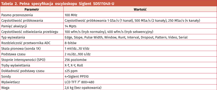Rezultaty dla mojego egzemplarza Siglent SDS1104X-U zestawiłem w tabeli 3.
