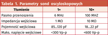 Siglent dołączył do oscyloskopu cztery sondy własnej produkcji, model PP510. Na oficjalnej stronie www.siglent.eu sondy te kosztują 16 euro. Są to standardowe sondy 1X/10X o paśmie 100 MHz, dokładne parametry pokazuje tabela 1.