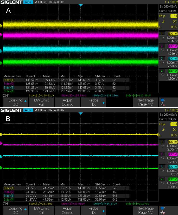 Przy okazji pomiarów możemy w dość prosty sposób sprawdzić poziom szumów własnych wejść Siglenta SDS1104X-U. Co więcej, tą samą metodą możemy porównać wyniki każdego oscyloskopu cyfrowego. Procedura wygląda następująco: