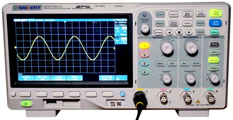 Siglent chcąc odbić rynek hobbystów z rąk Rigola zdecydował się opracować oscyloskop, który będzie oferował to samo lub więcej, niż Rigol DS1054Z. Gdy decydowałem się na zakup, nawet model SDS1104X-E był tańszy od DS1054Z, nie wspominając już o omawianym tutaj modelu X-U. Obecnie cena produktu Rigola jest zbliżona do SDS1104X-U, głównie dlatego, iż Rigol wypuścił na rynek nowe modele serii DHO800, co wpłynęło na spadek cen starszych modeli. Model Siglenta oferuje cztery kanały o paśmie 100 MHz, z częstotliwością próbkowania 1 GSa/s dla jednego kanału, 500 MSa/s dla dwóch i 250 MSa/s dla trzech i czterech. Pamięć akwizycji ma tylko 14 milionów punktów i to bez możliwości rozszerzenia, ale częstotliwość odświeżania wynosi 100 000 przebiegów na sekundę w trybie normalnym i 400 000 przebiegów na sekundę w trybie sekwencyjnym. Zostało to potwierdzone przez obserwowanie przebiegu na wyjściu Trigger Out.