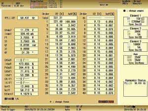 Wyniki analizy harmonicznych mogą być przedstawiane w postaci tabelarycznej, jak na rysunku 6 lub w postaci wykresu słupkowego (rysunek 7).