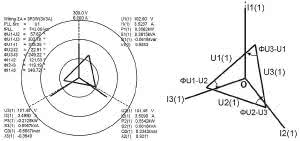 Do wizualnej interpretacji parametrów obwodów 3-fazowych służą natomiast wykresy wektorowe. Są one dostępne jednak tylko opcjonalnie. Wykres wektorowy stanowi wizualizację 3D napięć i prądów fazowych (rysunek 10).
