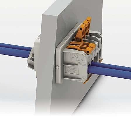 Jako przykładowe rozwiązanie takiego problemu może posłużyć przyłącze PLW 16 (fotografia 1). Maksymalny prąd przewodzenia to 41 A przy napięciu nominalnym do 1000 V. Ten element ma od strony zewnętrznej wygodne przyłącze dźwigniowe ze sprężyną push-in, dające możliwość szybkiego dołączania przewodów w postaci drutu lub linek z zaciśniętą tulejką kablową (jest to możliwe bez otwierania dźwigni - wystarczy wcisnąć przewód w komorę przyłączeniową).