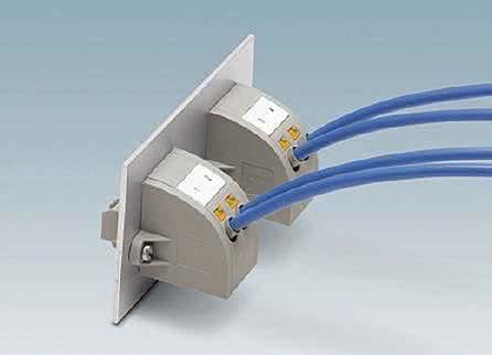 Dodatkowo, za pomocą elementu akcesoryjnego, istnieje możliwość zaplombowania takiego przyłącza i zabezpieczania go w ten sposób przed niepożądanym rozłączeniem. Od strony wewnętrznej urządzenia element ma standardowe przyłącze push-in pozwalające na szybkie oprzewodowanie podczas montażu urządzenia u producenta.
