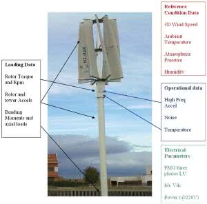 Dane związane z obciążeniem: Weryfikacja faktycznych obciążeń aerodynamicznych turbiny, w oparciu o jej założenia projektowe, wymaga pomiaru momentu obrotowego oraz prędkości wirnika, obciążeń przy podstawie wieży, przyśpieszenia wirnika oraz bocznych przyśpieszeń na różnych wysokościach wieży.