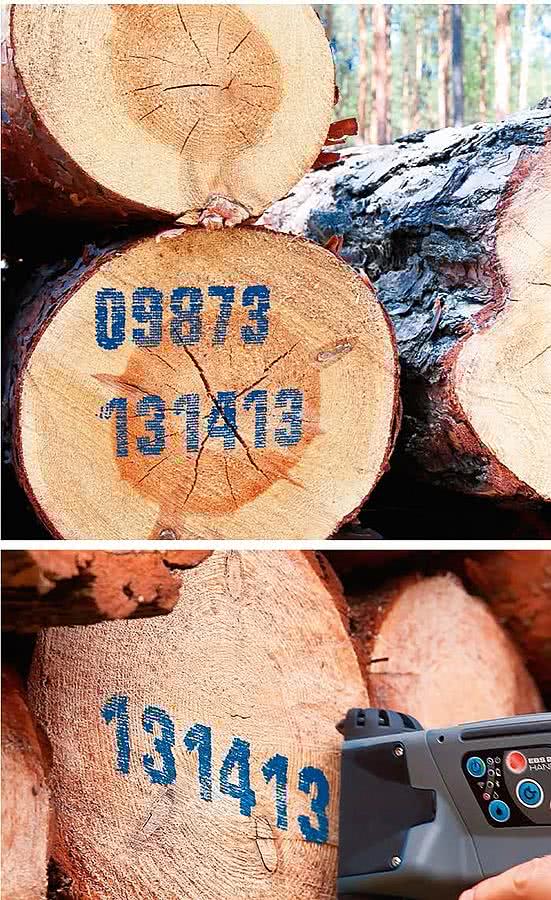 Dzięki niej można znakować nie tylko niewielkie przedmioty i opakowania, ale również mające duże gabaryty, np. kręgi betonowe, rury klimatyzacji i inne. Jej najważniejszą cechą i jednocześnie ogromną zaletą jest mobilność - drukarka może być obsługiwana za pomocą wbudowanego menu, nie jest związana z infrastrukturą przemysłową, można ją zabrać np. do lasu i znakować drewno, jak pokazano na fotografii 4.