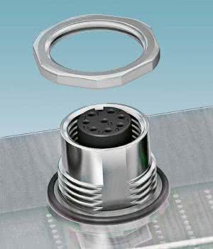 Producent rozszerzył linię obudów gniazd M12 dodając do niej elementy montowane od strony wnętrza urządzenia i mocowane za pomocą nakrętki zewnętrznej (fotografia 2). System dwuczęściowych złącz M8 i M12 łączy łatwość automatycznego montażu/lutowania wkładki stykowej oraz pewność mechanicznego połączenia wtyku ryglowanego w obudowie gniazda.