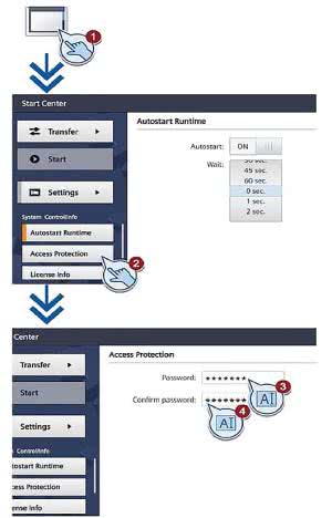 Jest to czas oczekiwania od momentu wyświetlenia okna Start Center do włączenia projektu wizualizacji. Wybranie w tym polu wartości 0 spowoduje, że projekt zostanie uruchomiony automatycznie i okno Start Center nie zostanie wyświetlone. Wówczas trzeba do projektu wizualizacji dodać funkcjonalność zamknięcia go.