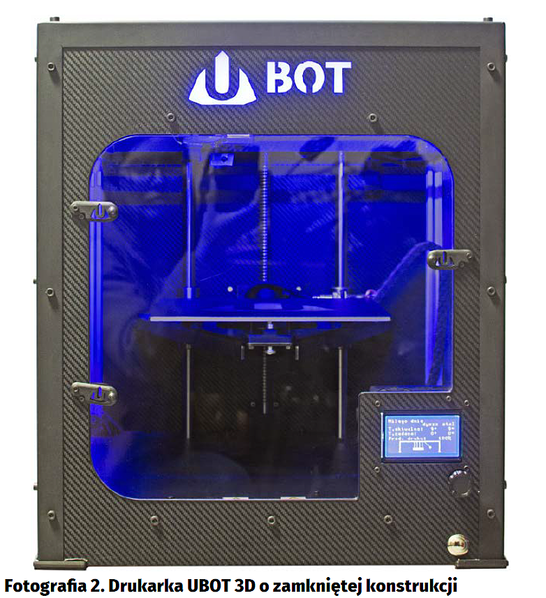 Ze względu na budowę drukarki 3D można podzielić na drukarki otwarte (fotografia 2) i zamknięte (fotografia 3). Drukarki o zamkniętej budowie to takie, w których obszar roboczy jest osłonięty, obudowany i zamknięty. Analogicznie, w drukarce otwartej przestrzeń robocza jest nieosłonięta. Tutaj wybór powinien być prosty. Zamknięcie komory ogranicza ruchy powietrza i pozwala na utrzymanie w miarę stałej temperatury. Dzięki temu podczas nakładania roztopionego materiału nie następuje bardzo szybkie wychłodzenie i zostaje zminimalizowany skurcz materiałowy. Niektóre drukarki przemysłowe (od 50 tysięcy wzwyż) wyposażone są także w podgrzewaną komorę roboczą (fotografia 4). Jest to bardzo polecane, jeśli chcemy drukować duże obiekty z materiałów o dużym współczynniku rozszerzalności termicznej.