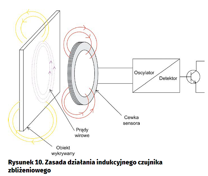 Indukcyjne czujniki zbliżeniowe. Często w różnych aplikacjach potrzebne jest wykrycie obecności metalowego elementu w niewielkiej odległości od sensora. Od lat najlepszymi do tego typu zadań są sensory indukcyjne. Pierwsze z nich pojawiły się w aplikacjach już we wczesnych latach sześćdziesiątych. Mimo upływu czasu właśnie ten rodzaj sensorów jest od wielu lat bestsellerem. Powodem jest odporność na trudne warunki przemysłowe. Istnieją również specjalne wykonania odporne na agresywne chemicznie środowiska, posiadające poszerzony zakres temperatur pracy i inne. Mimo prostej zasady działania użytkownicy stosujący indukcyjne czujniki zbliżeniowe często popełniają błędy. Poprawna detekcja obiektów wymaga od użytkownika znajomości fundamentalnych zasad działania tego typu sensora.