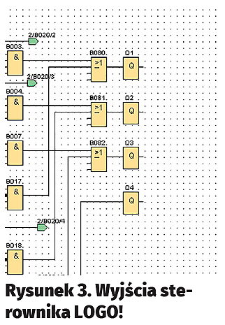 Funkcje wyprowadzeń pokazano na rysunkach 2 i 3. Wejścia wyposażono w nieskomplikowane filtry eliminujące krótkie impulsy. I na tym w zasadzie kończy się najłatwiejsza część programu dla LOGO!