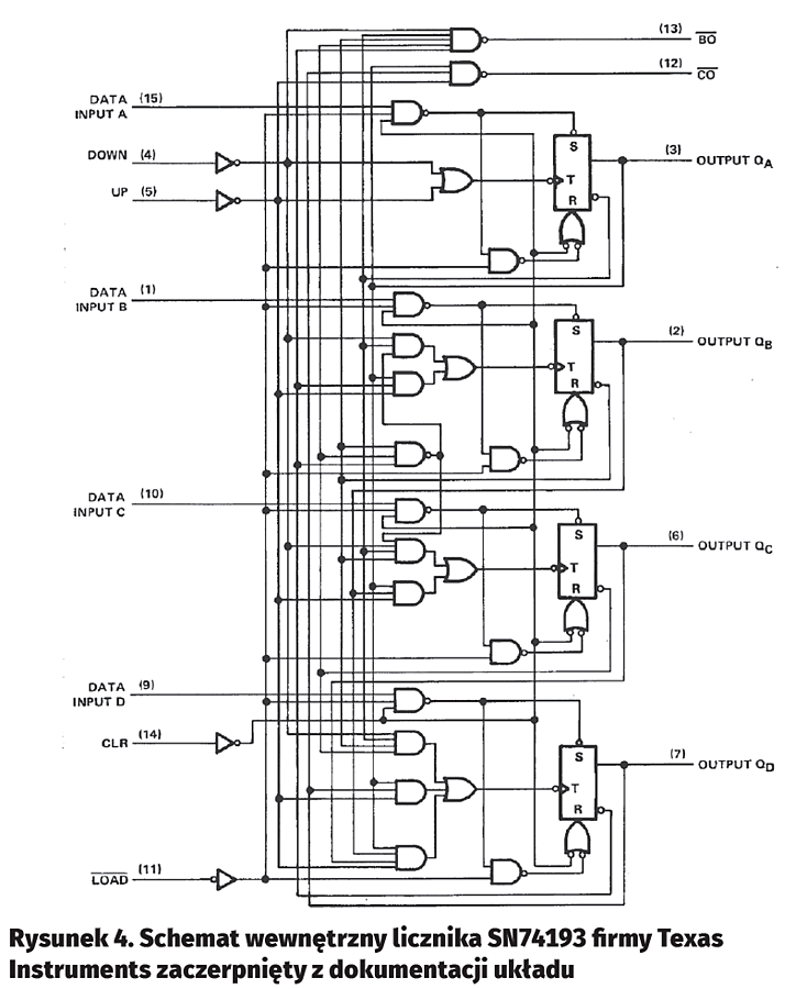 Zadaniem płytki interfejsowej było przesyłanie na odległość stanu licznika. Jak wspomniano, zrobiono to za pomocą wyjść binarnych, co wymagało wykonania licznika z elementów dyskretnych, a nie wykorzystanie gotowego modułu programowego dostępnego w LOGO! Soft Comfort. Szczerze powiedziawszy, część sprzętowa interfejsu jest łatwa do wykonania – przysłowiowe „schody” zaczynają się przy wykonaniu oprogramowania.
