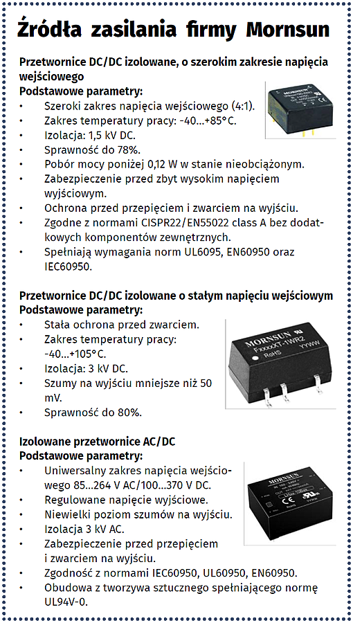 Co ważne, niezależnie od zastosowanego rozwiązania, cała instalacja musi spełniać wszelkie wytyczne i wymagania dla układów fotowoltaicznych odnośnie do bezpieczeństwa ich użytkowania. Firma Mornsun posiada w ofercie kompletne rozwiązanie przeznaczone do zasilania sterownika takiego systemu.