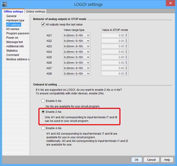 Na początek wyjaśnimy działanie sekcji pomiaru temperatury, na którą składają się bloki B003 i B004 oraz sygnał z wejścia AI1, czyli fizycznego wejścia I7. Aby tak było, w ustawieniach projektu, przedstawionych na rysunku 3, należy wybrać wymaganą w projekcie liczbę wejść analogowych, które ma obsługiwać jednostka centralna LOGO! 8. Nie dotyczy to wejść analogowych, które ewentualnie dołączymy w postaci modułów zewnętrznych. Sygnał napięciowy w standardzie 0…10 V podajemy z dowolnego czujnika temperatury pracującego w tym przedziale napięcia wyjściowego i znanej nam charakterystyce lub możemy się posiłkować własnymi układami pracującymi np. w oparciu o czujnik LM35 wzbogacony o wzmacniacz operacyjny lub możemy w ostateczności zastosować termistor w gałęzi dzielnika napięcia. Niestety ostatnie rozwiązanie ma podstawową wadę, dużą nieliniowość charakterystyki. Dlatego lepszym rozwiązaniem będzie zastosowanie gotowego przetwornika temperatura/napięcie o znanej nam liniowej charakterystyce.