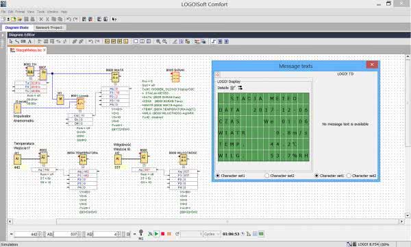 Do symulacji pracy stacji meteorologicznej można używać zestawu symulacyjnego KA-LOGO-IO-SIMULATOR (fotografia 5), który zawiera między innymi czujnik temperatury i pozwala na dołączenie dowolnego innego czujnika zewnętrznego. Do symulowania prędkości wiatru możemy używać przełączników lub dla większych prędkości podać sygnał z zewnętrznego generatora fali prostokątnej. Alternatywą jest symulator programowy, wbudowany w oprogramowanie LOGO! Soft Comfort (rysunek 6).
