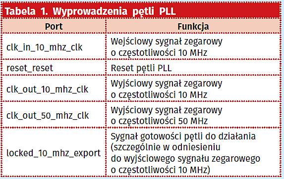 wynikające z modułów generowania i podziału sygnału zegarowego