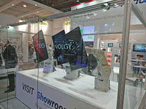 Pierwszym z nich były roboty mobilne firmy Mobile Industrial Robots, choć nie tylko tej, bo i inni producenci mieli samobieżne roboty na stoiskach. Wszystkie z nich były imponujące, ale to rozwiązanie od Mobile Industrial Robots najbardziej zwracało swoją uwagę, gdyż ich maszyna sama jeździła po terenie targów, poruszając się pomiędzy gośćmi i stoiskami. Pokazywało to tym samym, jak bardzo ufa się obecnie takim rozwiązaniom i jak mocno zostały dopracowane. Mobilny robot w tłumie postronnych ludzi, nieprzeszkolonych do obcowania z nim - jeszcze kilka lat temu takie coś byłoby nie do pomyślenia. A tymczasem, dzięki zastosowaniu mnóstwa czujników i sztucznej inteligencji, robot ten nie tylko zachowuje bezpieczeństwo, ale i podejmuje sensowne reakcje, spowalniając swój ruch, gdy w jego otoczeniu jest tłok, zatrzymując się w odpowiedniej odległości, jeśli napotka przeszkodę oraz starając się już z daleka ominąć przeszkodę, którą widzi na swojej planowanej trasie. Niewątpliwie roboty tego typu będą coraz częściej widywane w fabrykach, ale i nie tylko, bo pewnie także i w centrach handlowych czy hotelach.