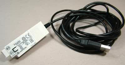 Przekaźniki rodziny Zelio Logic mogą być również programowane za pomocą specjalnego oprogramowania uruchamianego na komputerze. Jest w nim wykorzystywany język (drabinkowy) LADDER oraz bloki funkcyjne (FBD) stanowiące intuicyjne i dość łatwe do opanowania narzędzia. Informacja o stanie pracy urządzenia w trakcie eksploatacji jest dostępna zarówno na wyświetlaczu, jak i w programie. Warunkiem jest oczywiście połączenie sterownika z komputerem. Służy do tego nietypowy przewód zakończony z jednej strony standardowym wtykiem USB, z drugiej zaś specjalnym wtykiem zgodnym z gniazdem zastosowanym w module (fotografia 1). Gniazdo USB umieszczono głęboko w komorze przeznaczonej dla modułów rozszerzających, stąd wynika konieczność przedłużenia wtyku.