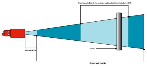 W wielu sytuacjach jest wymagane jedynie wykrywanie obiektu, na przykład na taśmie transportowej, stole lub na wózku transportowym. Może jednak nie być możliwe zamontowanie odbłyśnika, który współpracowałby z czujnikiem refleksyjnym lub odbiornika w obrębie wiązki emitowanej przez nadajnik czujnika. Jeśli za obiektem, który ma zostać wykryty, znajduje się tło zakłócające, właściwym wyborem może okazać się czujnik rozproszeniowy z funkcją kompensacji tła. Takie czujniki wykorzystują zasadę triangulacji, mierząc natężenie światła odbitego przez żądany cel oraz oddalenie obiektu. Minimalne wymiary obiektu są określane przez wielkość używanej wiązki światła. Odległość do obiektu jest konfigurowana za pomocą śruby ustalającej, chociaż niektóre bardziej zaawansowane rozwiązania mogą wykorzystać metodę adaptacyjną „teach-in” (rysunek 1).