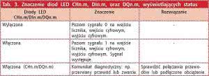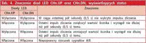 Diody LED CHn.A, CHn.B, CHn.N oraz DIn.m wskazują bieżący poziom odpowiadających sygnałów. Diody LED wyjść cyfrowych DQn.m wskazują pożądany status. Diody LED UP oraz DN wskazują logiczny kierunek zliczania. Częstotliwość migania diod LED kanałów jest ograniczona do ok. 5 Hz. Jeśli występują wyższe częstotliwości, to diody LED kanałów nie będą wskazywały bieżącego statusu i będą migać z częstotliwością 5 Hz.