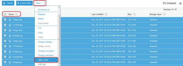 Import plików rozpoczynamy po wybraniu opcji Upload. Następnie dodajemy pliki i przyciskiem i zatwierdzamy umieszczenie plików w magazynie danych (rysunek 11). Zaimportowane pliki nie są dostępne publicznie i oprogramowanie do obsługi umiejętności asystentki Alexa nie ma praw dostępu do plików. Musimy zatem zmienić prawa dostępu do plików i udostępnić je publicznie. W tym celu zaznaczamy wszystkie zaimportowane pliki, otwieramy menu konfiguracyjne i z dostępnych opcji wybieramy Make public (rysunek 12).