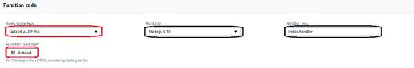 Teraz przechodzimy do sekcji zarządzania kodem źródłowym funkcji i z listy rozwijalnej Code entry type wybieramy opcję Upload a .ZIP file. Następnie, dołączamy archiwum ZIP zawierające kod programu umiejętności Invisible Dice z pierwszej części kursu (rysunek 17). Po wgraniu archiwum z kodem programu funkcji Lambda przechodzimy do okna konfiguracji wyzwalacza funkcji.