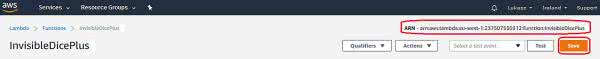 Na zakończenie zapisujemy ustawienia funkcji Lambda oraz kopiujemy identyfikator ARN utworzonej funkcji InvisibleDicePlus (rysunek 19).