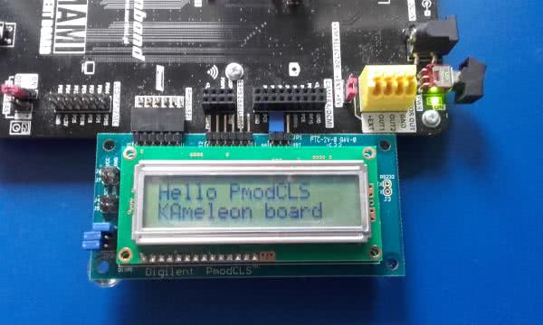 Moduł PmodCLS (fotografia 1) ma wyświetlacz znakowy LCD o rozdzielczości 2 linie po 16 znaków. Do jego obsługi służy znajdujący się na płytce, zaprogramowany mikrokontroler ATmega48, przyjmujący komendy za pośrednictwem jednego z interfejsów szeregowych: SPI, I2C lub UART. Aktywny interfejs do komunikacji z modułem PmodCLS jest wybierany za pomocą zworek na złączu JP2 (MD0…MD2).