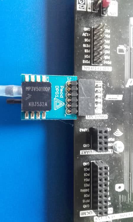 Pierwszy z układów, MP3V5010, służy do pomiaru różnicy ciśnienia pomiędzy swoimi wejściami. Maksymalna różnica mierzonego ciśnienia to 10 kPa, natomiast rozdzielczość pomiarowa wynosi 270 mV/kPa. Czujnik ma wyjście analogowe, z którego można odczytać napięcie proporcjonalne do zmierzonej różnicy ciśnienia na wejściach układu.