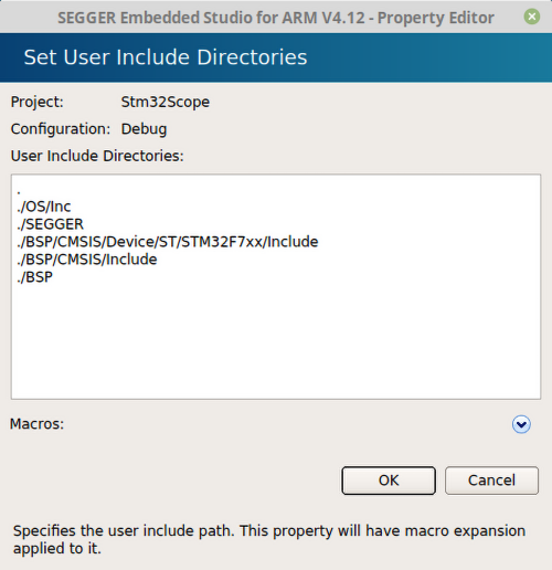 Podobnie jak w wypadku biblioteki embOS, wszystkie pliki źródłowe z tabeli 3, musimy dodać do projektu, korzystając z opcji Add Existing File, natomiast ścieżki do lokalizacji plików nagłówkowych powinny znaleźć się w ustawieniach projektu, w polu User Include Directories. Przykładową konfigurację pokazano na rysunkach 1 i 2. Po dodaniu wszystkich ścieżek i źródeł musimy jeszcze zdefiniować symbol STM32F746xx dla biblioteki CMSIS. Możemy to zrobić w ustawieniach projektu w polu Preprocessor → P reprocessor Definitions.