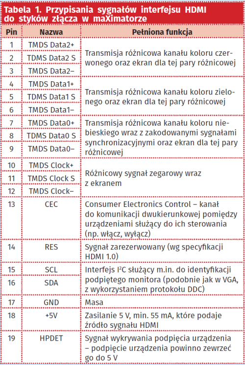 I tym razem zaczniemy naszą podróż do wyświetlenia tekstu na monitorze od przyjrzenia się interfejsowi, który wykorzystamy. Rozmieszczenie wyprowadzeń na tym złączu przedstawiono na rysunku 1, natomiast w tabeli 1 opisano ich poszczególnych funkcje.