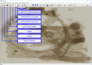 Po uruchomieniu programu zostaje wyświetlone okno, w którym tworzymy schemat i uruchamiamy symulację. Niektóre pozycje paska narzędzi edycji schematu zostały opisane na rysunkach 3 i 4. Większość z tych opcji da się także uzyskać, korzystając z głównego menu programu, menu kontekstowego lub skrótów klawiszowych. Na przykład, aby utworzyć nowy schemat, można także: